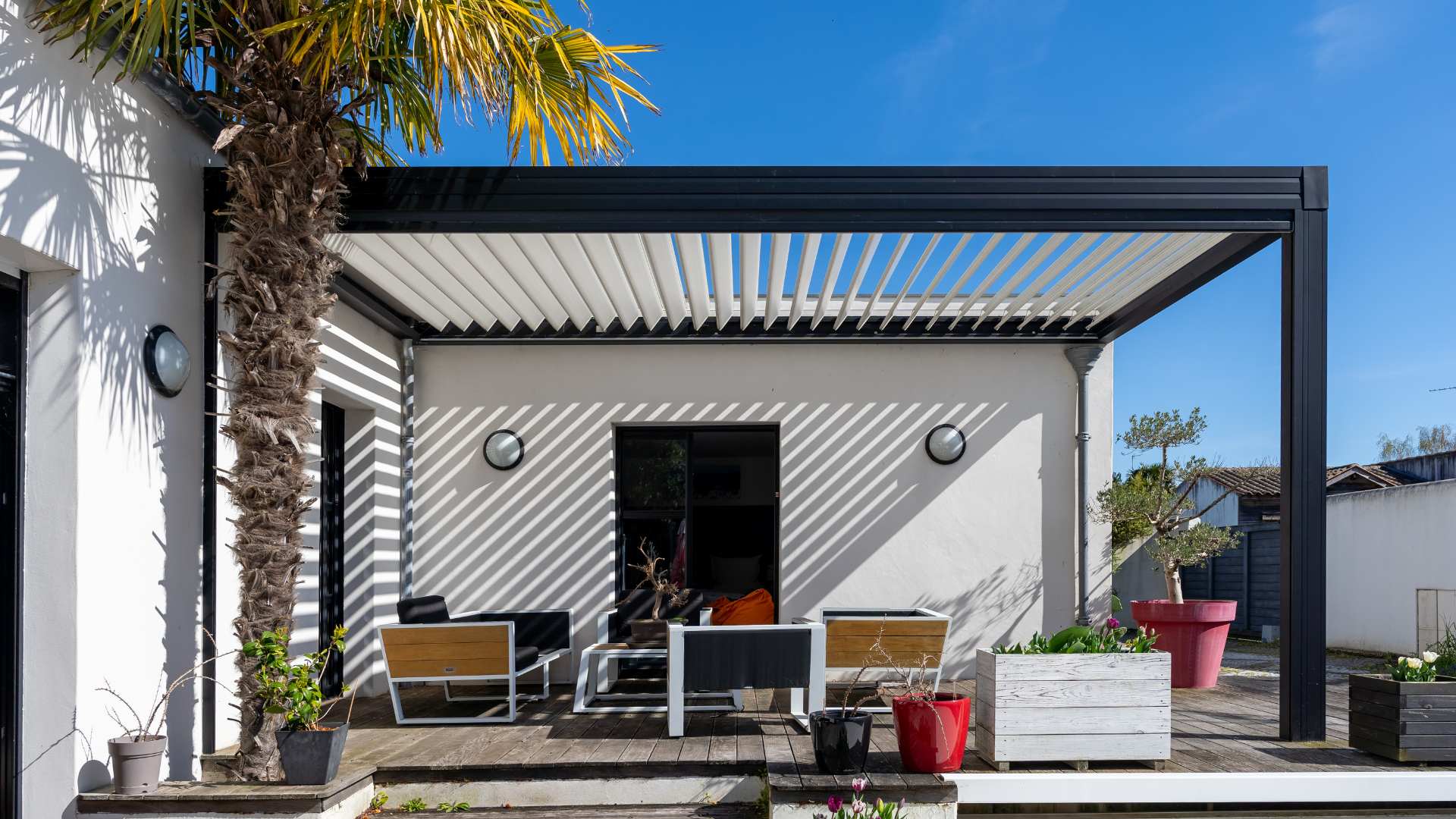 - 7 Pensez à l’aménagement de votre terrasse pour sublimer votre pergola